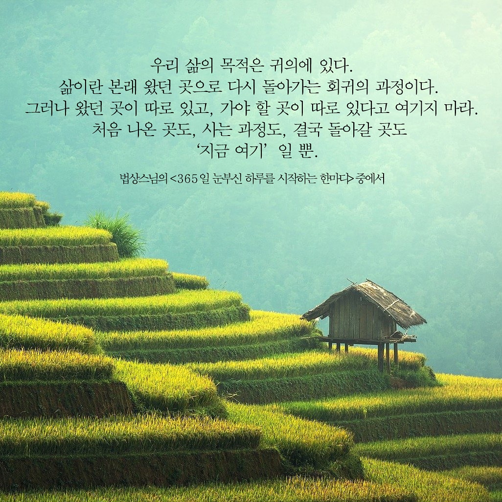 이처럼 삶의 모든 것들은 인연따라 왔다가 갈 뿐입니다.