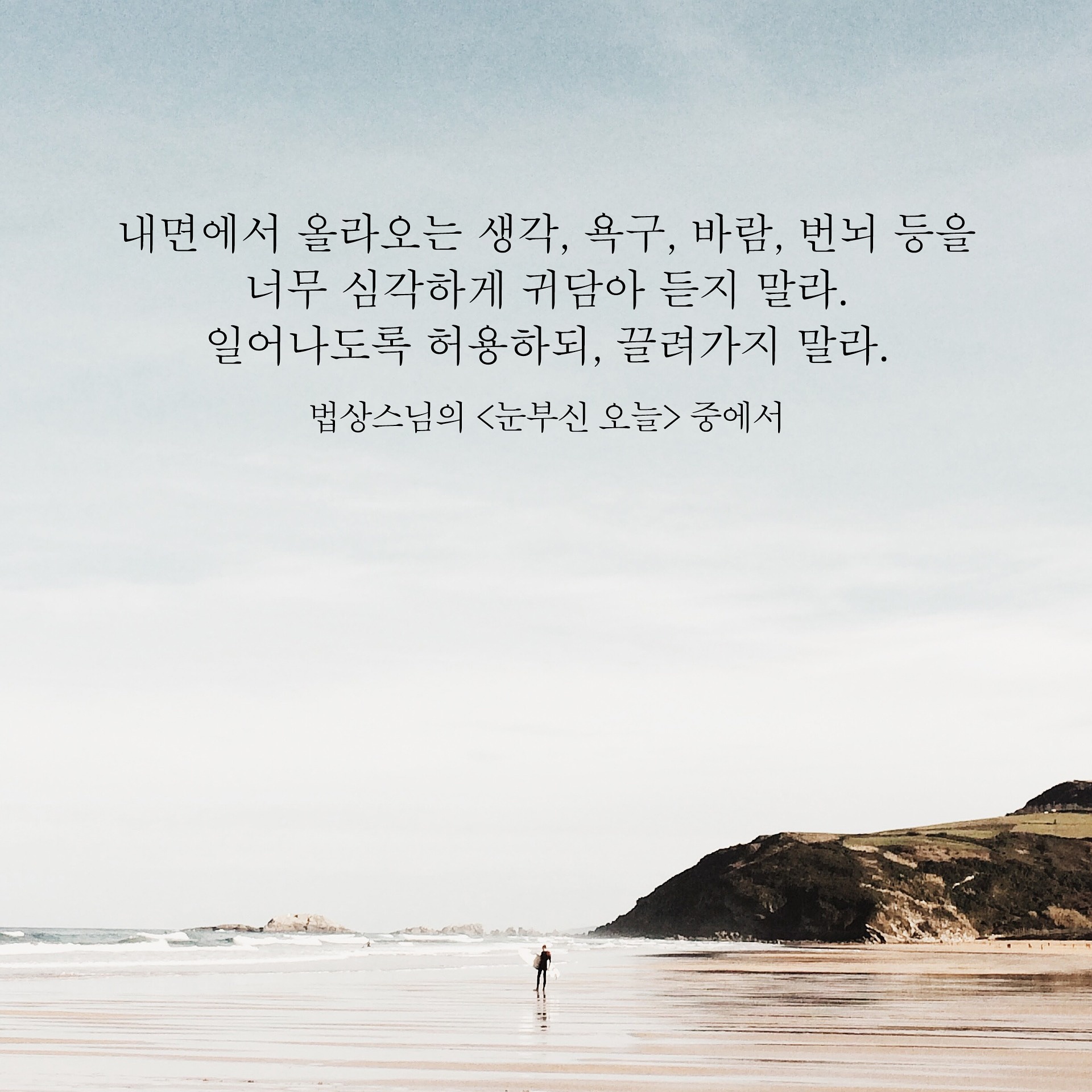 무수히 많은 자기 생각을 집착하며, 그것을 진짜 세상이라고 여기는 이 허망한 착각에서 놓여나야 하지 않을까.