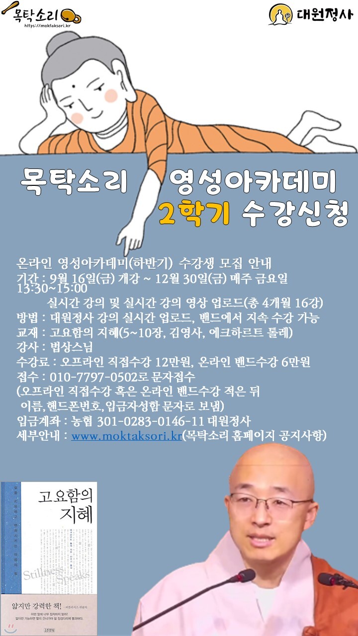 (온라인 수강료 6만원 입금할 계좌번호 : 농협 301-0283-0146-11 대원정사)