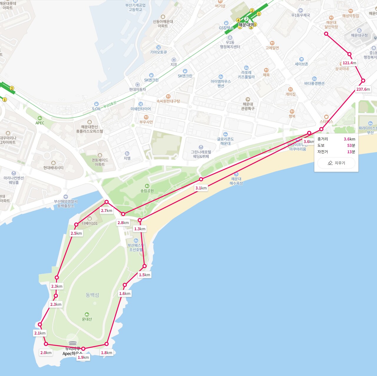 1. 해수욕장 산책 혹은 해수욕장과 동백섬 산책(약 1~2시간)