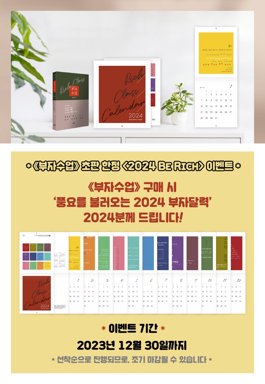 '2024 부자달력'을 책을 구입하시는 분들께 선물로 드리는 이벤트를 준비하셨네요.