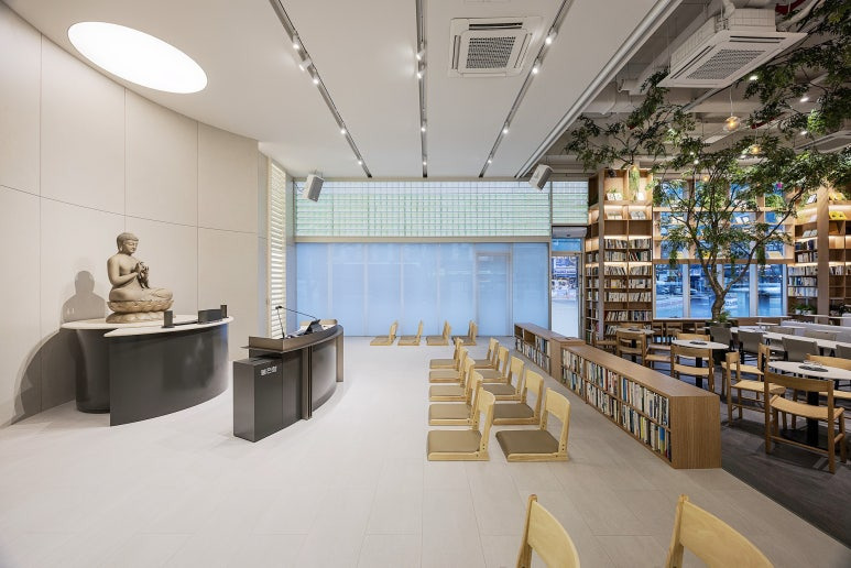 둘째는 불서 및 마음치유 전문 도서관으로, 법당 곳곳에 불교 서적과 깨달음, 영성, 치유 관련 주제의 책들을 비치해 놓았으며, 불교 영성 지혜 통합 아카이브이자 허브 라이브러리 역할을 할 예정입니다. 대출도 가능합니다.