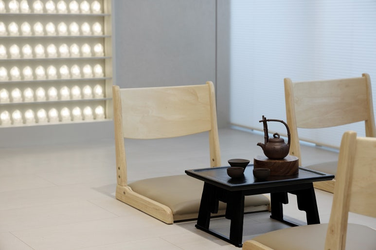넷째는 보이차와 전통차, 핸드드립 커피를 함께 나누는 열린 공간입니다. 절에 오신 분께 따뜻한 차를 한 잔 내어드리는 의미이기에 따로 비용을 받지는 않으며, 보시는 희망에 따라 불전함에 자율 보시를 하거나, QR코드 카드결재를 하시면 됩니다.