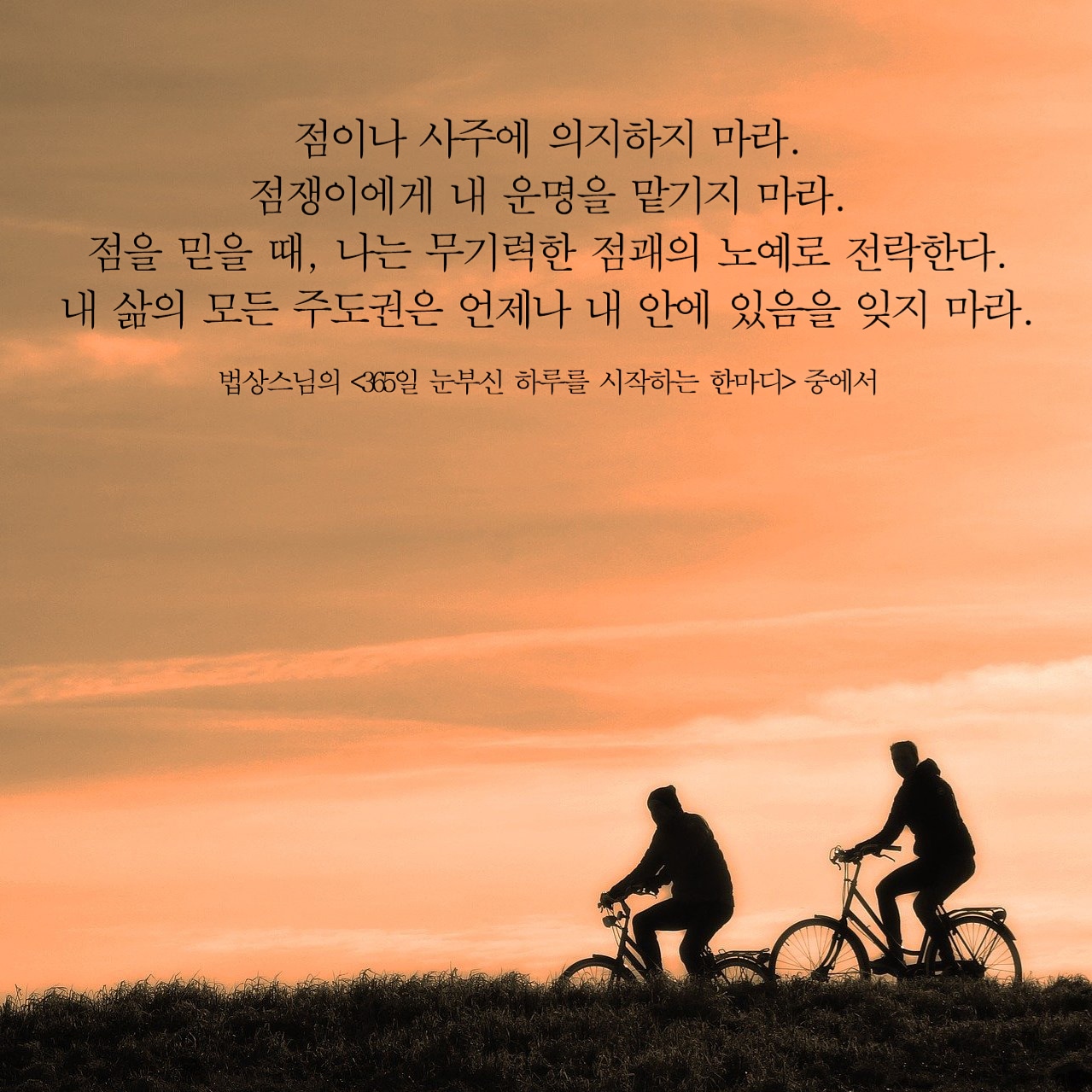 스님도 아니고, 수행자도 아니고, 사람도 아니고, 남자도 아니고, 특정한 삶의 방식대로 살아야 하는 사람도 아니고, 그 어떤 것으로도 규정될 수 없는, 그저 아무것도 아닌, 이렇게 살다가 이렇게 갈 뿐입니다.