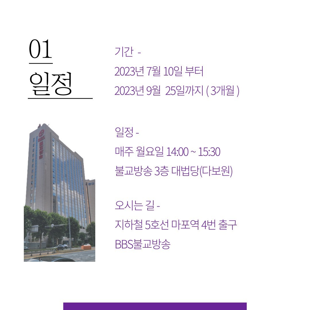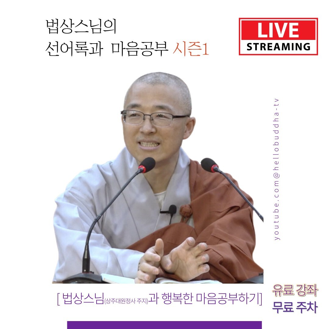 일정 : 매주 월요일 14:00~15:30, 서울 마포 불교방송 3층 법당