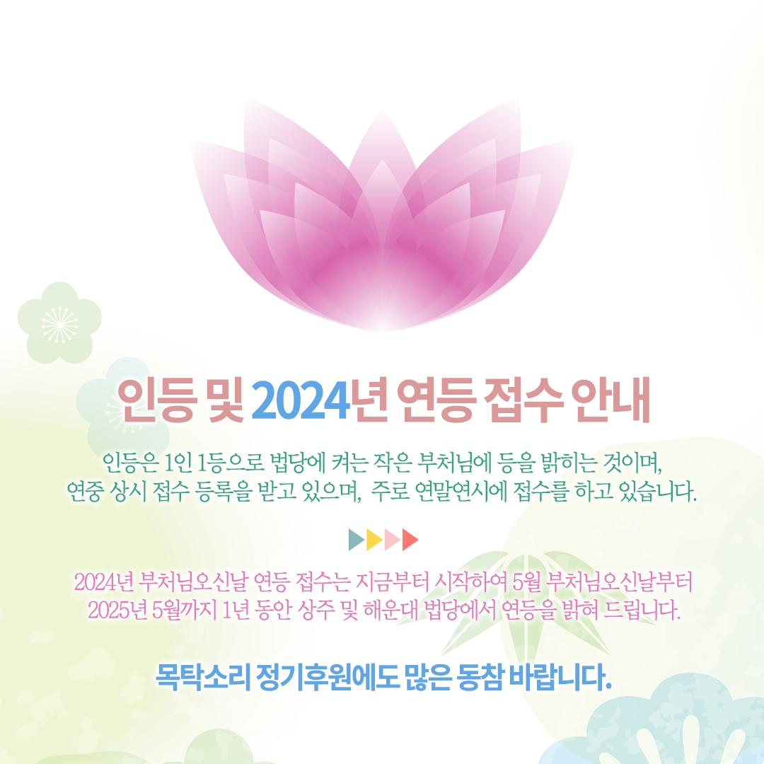 - 2024년 부처님오신날 연등 접수는 5월까지 접수 받아